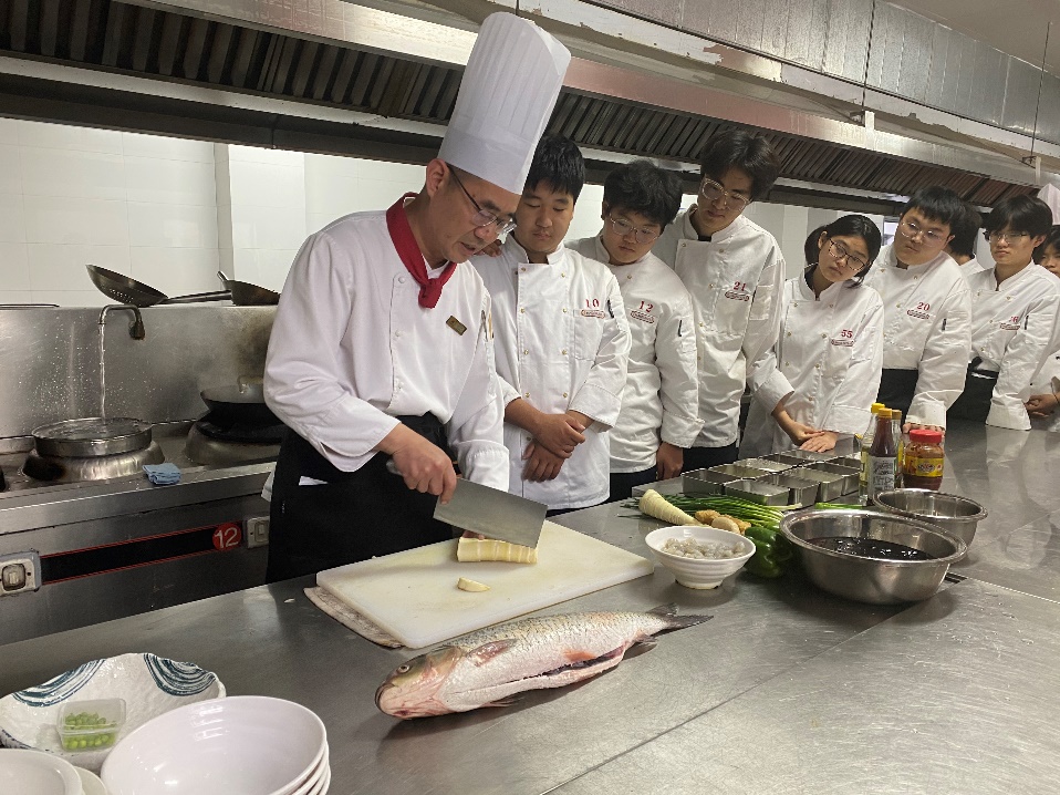 依托校企合作,烹饪专业持续开展“名师大讲堂”活动,邀请企业名厨到校为学生展示并展示专业技能,美味与技艺的融合,帮助学生进一步清晰职业规划蓝图。