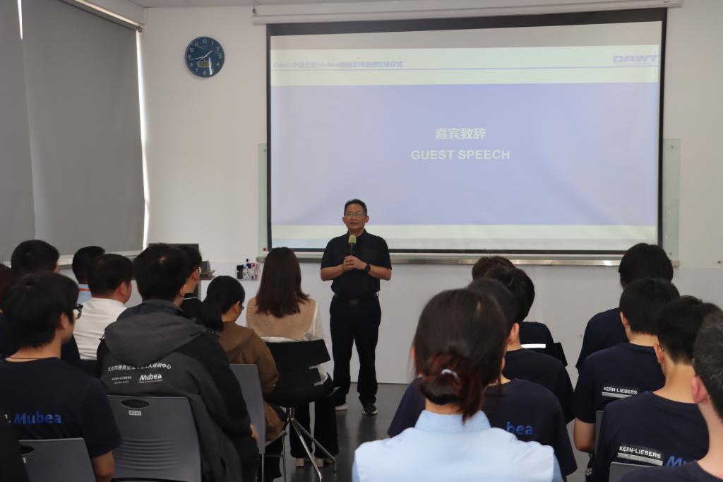 慕贝尔中国区车身事业部运营总监陈汉良,慕贝尔太仓和昆山工厂人力资源经理毛丹,慕贝尔扬州工厂人力资源经理吴向东,江苏联院太仓分院(太仓中专)党委书记丁亮,机械工程系主任侯宏强、副主任徐徐,以及DAWT经理陈彦霖等领导嘉宾齐聚一堂,共同为两位学徒送行。此次前往慕贝尔德国总部进修的学徒张高齐和孙添翼,均是 DAWT 精心培养的优秀代表。在欢送仪式现场,气氛热烈而温馨。