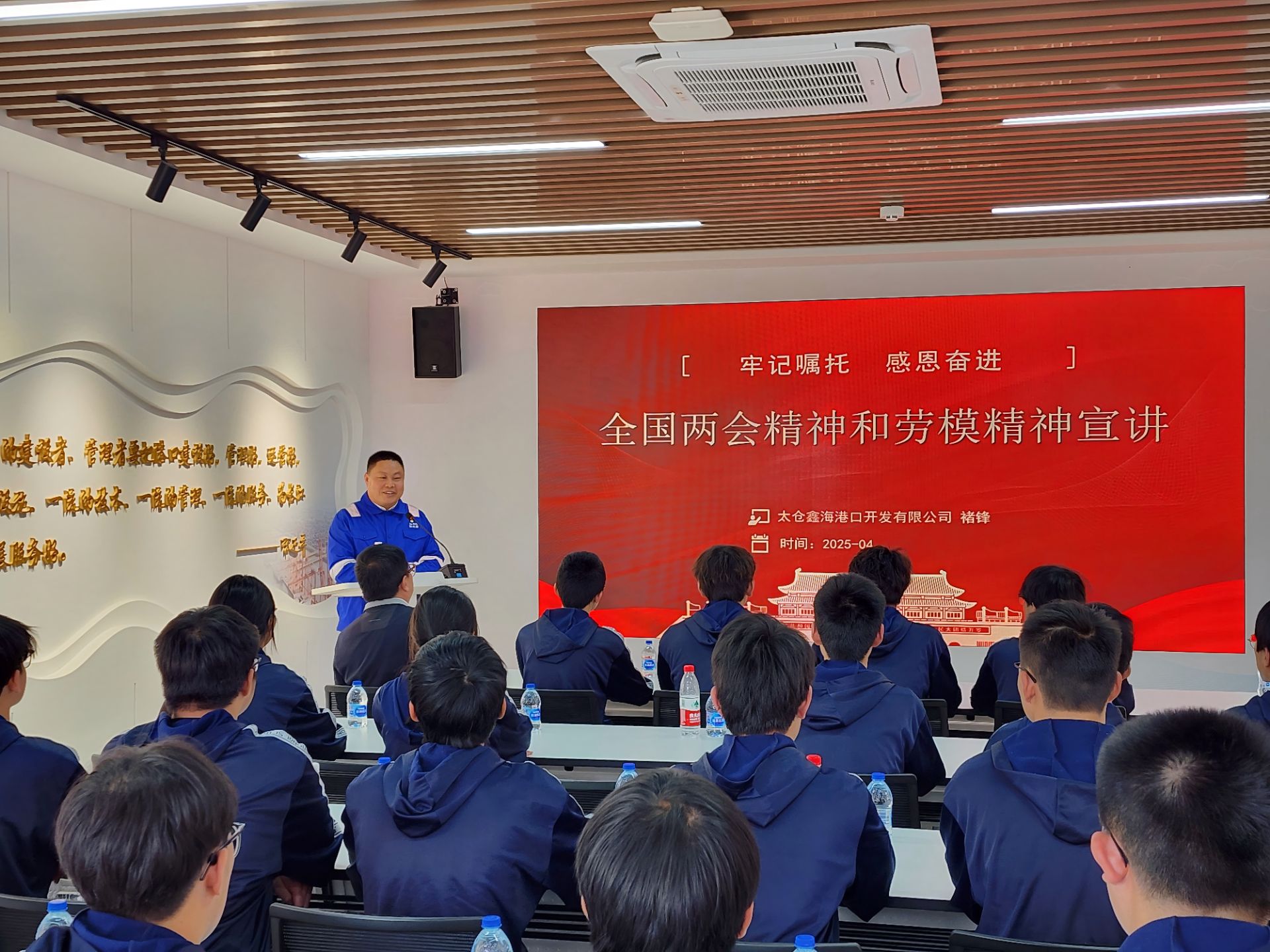 接着,为了让同学们获得更加丰富的研学体验,由全国人大代表、苏州港集团太仓鑫海港口开发有限公司门机班大班长褚锋为同学们授课。
