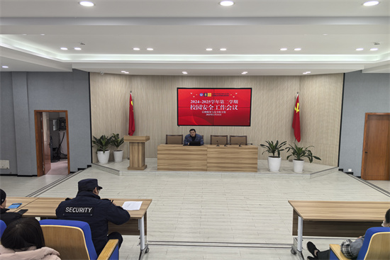 我校东仓路校区于2025年2月11日在尚远楼3楼组织召开后勤服务与安全保卫工作会议。会议由后勤服务与安全保卫处处长姚平主持,副校长李莹德、副处长宋泓熠及安保、宿管、后勤等部门工作人员共同参会。