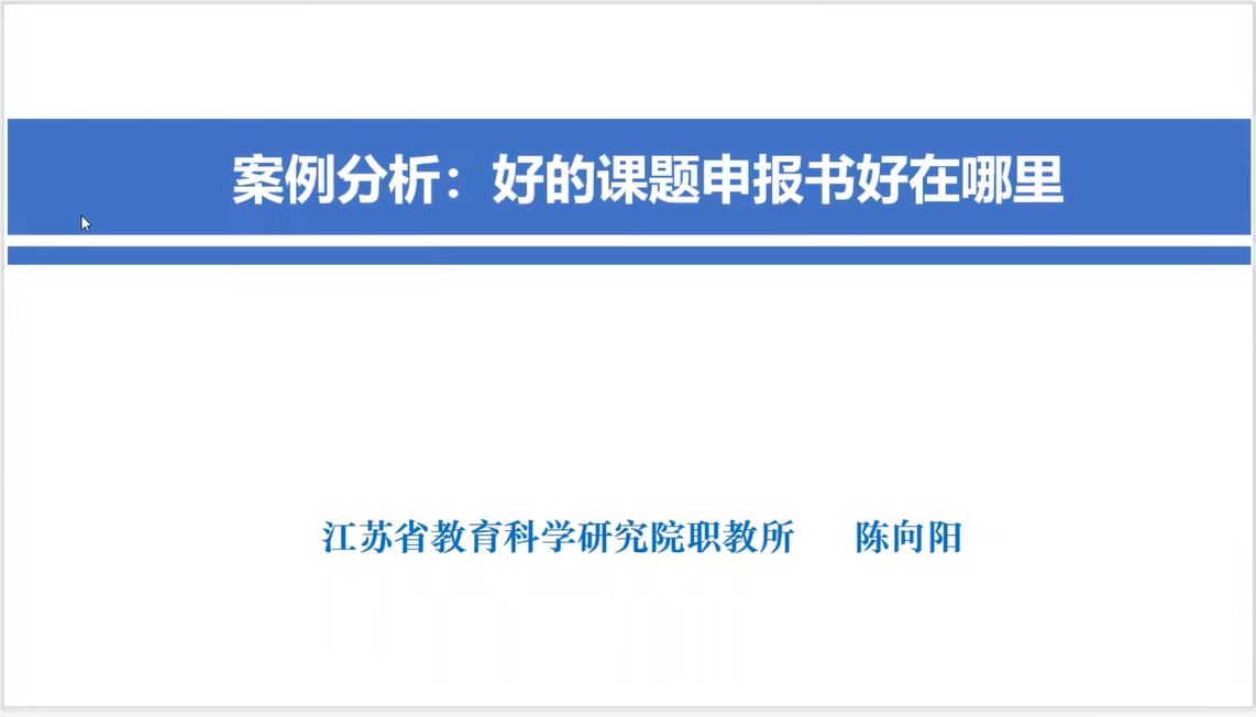 本次线上讲座邀请了江苏省教育科学研究院职业教育与终身教育研究所副所长陈向阳担任主讲专家。讲座由学校副校长殷利主持,教师发展处副处长陆清漪、第二届卓越引航教师高级研修班成员、各名师工作室成员、2020年以来入职的青年教师和对课题申报有意向、感兴趣的老师参加了本次活动。