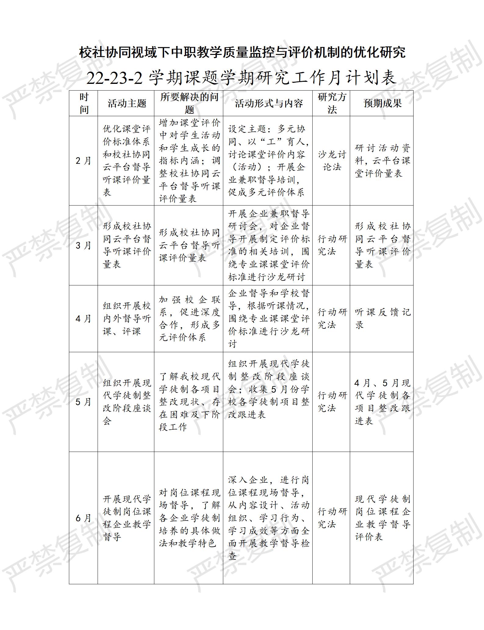 研究工作计划表