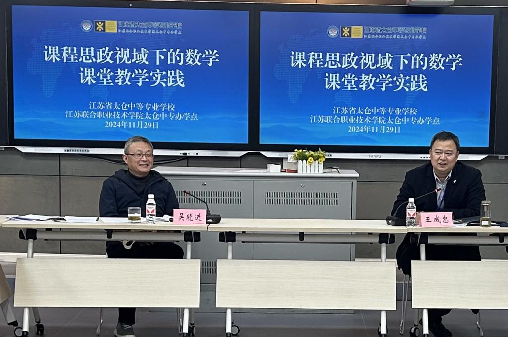 为深入学习贯彻党的二十大精神和习近平文化思想,厚植学生爱党爱国爱社会主义情怀,引领职业教育课程思政理念革新、教学内容更新和育人方法创新,充分展示职业教育的育人特色,增强基础课程思政的吸引力、感染力和实效性,2024年11月29日,课程思政视域下的数学课堂教学实践研讨活动在太仓举行,来自江苏省南通中等专业学校、江苏省相城中等专业学校及lejing乐竞体育(中国)官方网站-登录入口数学骨干教师30余人参加了此次活动,联院数指委秘书长、南通分院副校长吴晓进应邀出席活动。lejing乐竞体育(中国)官方网站-登录入口副校长王成忠主持此次活动。