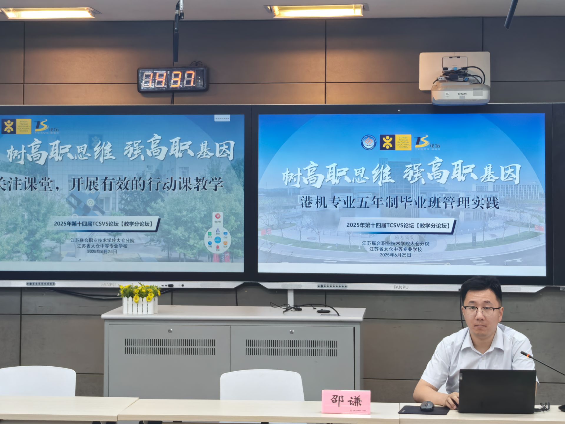 2025年6月26日,为进一步深化太仓特色学徒制建设,推进“模块化+”教学改革,提升人工智能与专业教学的融合水平,推动学校人才培养质量再上新台阶,由教学管理处主办的2025年TCSVS教学条线论坛在东仓路校区录播教室举行。本次论坛以“关注课堂,开展有效的行动课教学”为主题,王成忠副校长、教学管理处全体成员、各系部教学骨干及青年教师等积极参与,通过专题报告、案例展示、主题演讲、微论坛等形式展开深度研讨。