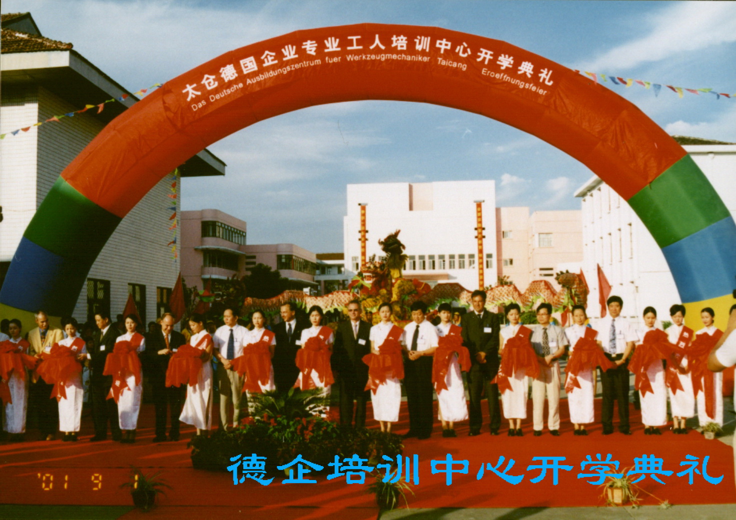 2001年7⽉,太仓市德资企业专业⼯⼈培训中⼼(简称DAWT)是时任中国国务院副总理李岚清与德国总理施罗德在北京主持第⼆次中德⾼技术对话论坛期间正式签约的,中德两国政府间的合作项⽬。同年9⽉,由德国巴符州政府、克恩⾥伯斯公司、慧⻥公司、太仓经济开发区及太仓中等专业学校采⽤混合所有制形式合作创办了中国第⼀家与德国职业技术教育同步的职业培训中⼼——太仓德资企业专业技术⼯⼈培训中⼼,正式引⼊“双元制”职业教育。2012年慕⻉尔汽⻋部件(太仓)有限公司⼊股增资,培训中⼼按照“⼀校多企”治理结构,培养模具机械⼯、设备技术员。年招⽣规模20-30⼈左右。招⽣层次有三年制中专、五年制⼤专。2019年全国职业教育改⾰发展现场会近200位与会代表现场观摩DAWT。建设项⽬为教育部第⼆批现代学徒制试点项⽬、江苏省现场⼯程师专项⼈才培养计划项⽬、江苏联合职业技术学院第⼆批现代学徒制专业⽰范点。案例⼊选《中国中等职业教育质量年度报告2018》,建设成果获2018年国家教学成果奖⼆等奖、2021年江苏省教学成果奖特等奖、苏州市现代职业教育校企合作⽰范组合、苏州市职业院校优秀企业学院、苏州市⾼技能⼈才培养突出贡献单位、太仓市产业⼯⼈赋能站。