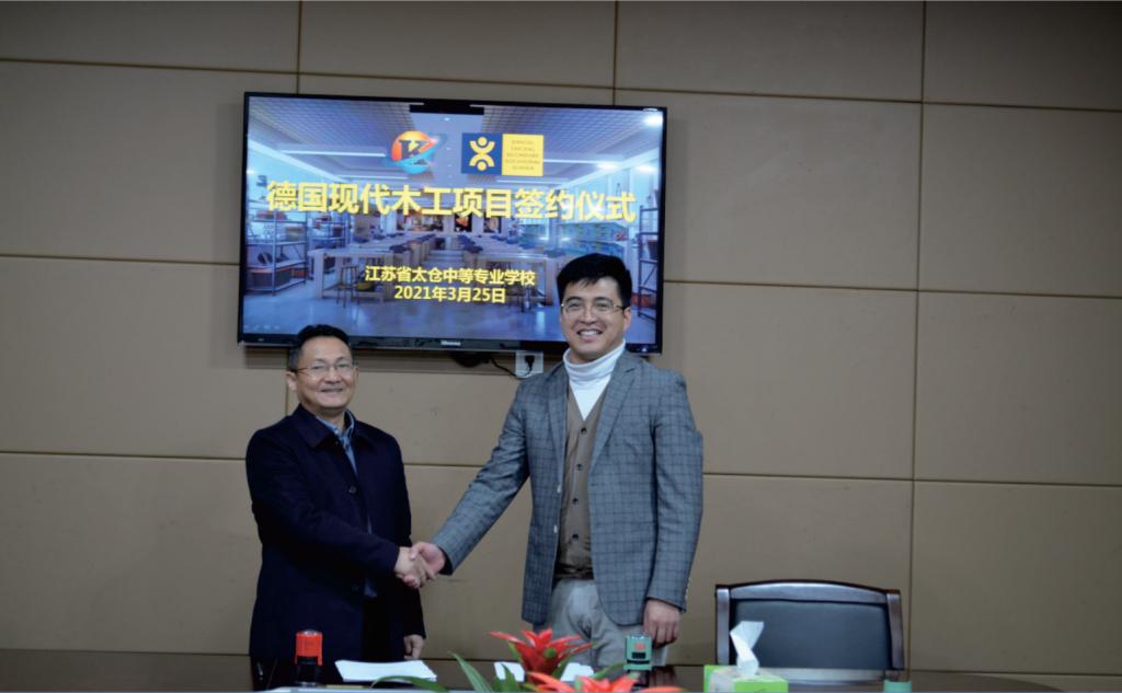 2021年3月25日,太仓中专与江苏柯伊斯高新科技发展有限公司(简称柯伊斯高科),共建现代木工设计中心(简称设计中心)。校企双方成立工作组,双万充分友挥目身仇穷状石e营,柯伊斯高科引入德国现代木工课程资源及先进教学设备,字校专业课教帅将接受柯伊斯高科提供的专业师资培训,校企双方共同研发职业教育课程,与设计中心专职教师开发课程资源。课程分为初级阶段课程、中级阶段课程和高级阶段课程,从榫卯练习木材知识、木工制图、木工机械、手工技能、实践制作到木工放样、高级榫卯操作手工技能训练、机械操作训练、全系统学习。