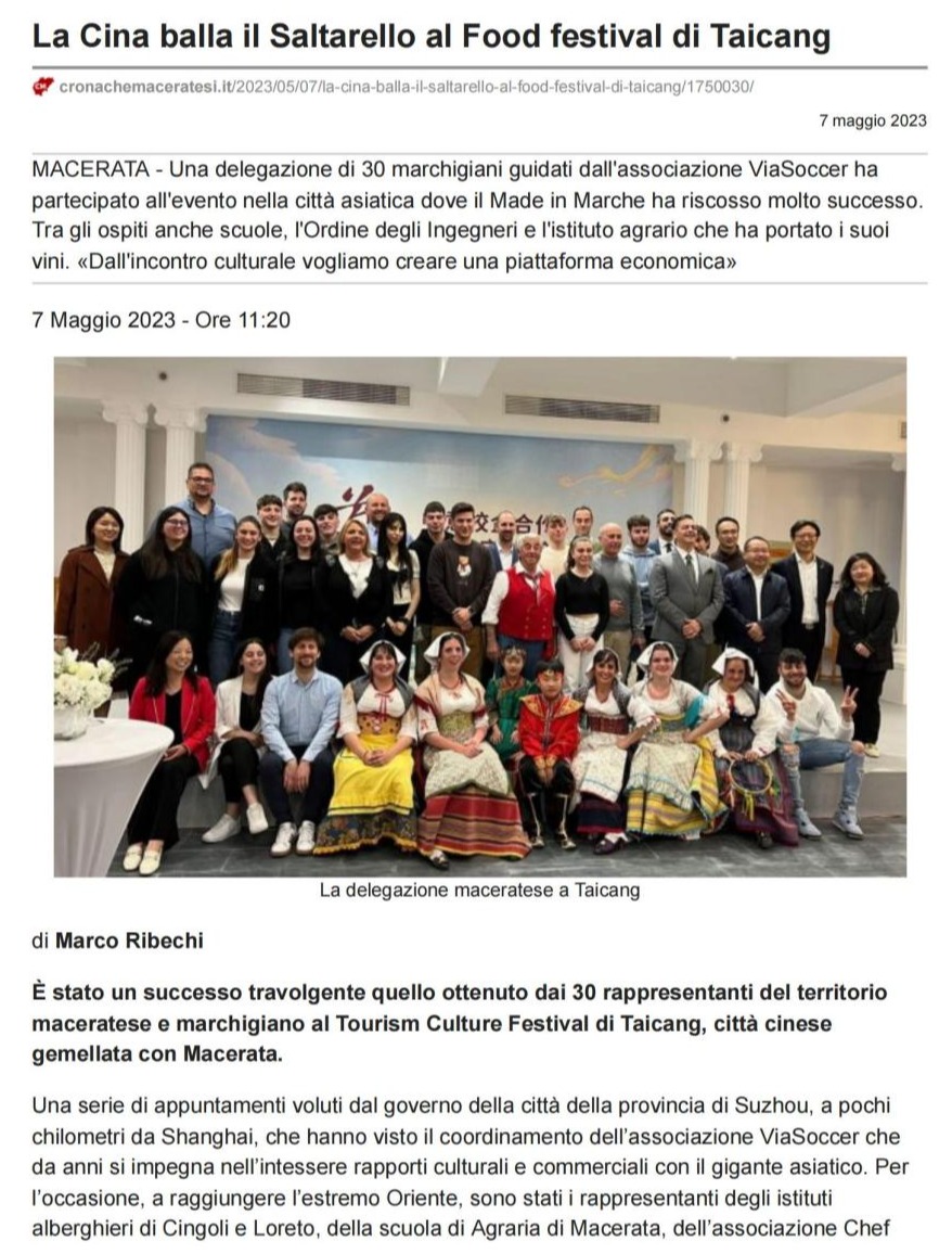 意大利《马切拉塔省报》专题报道法奈利旅游学校与省太中专校际合作