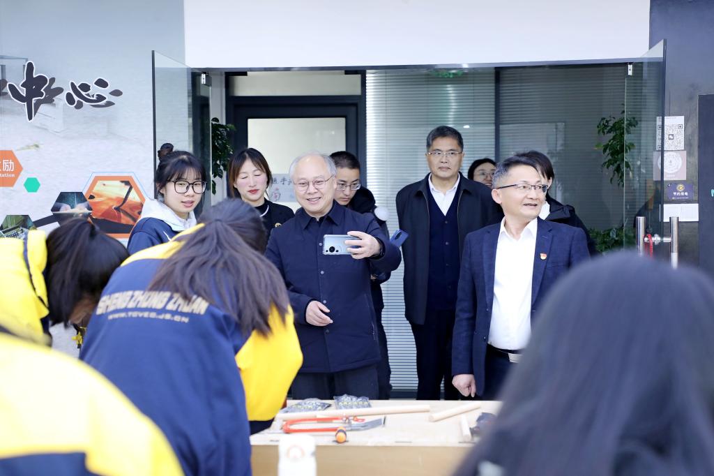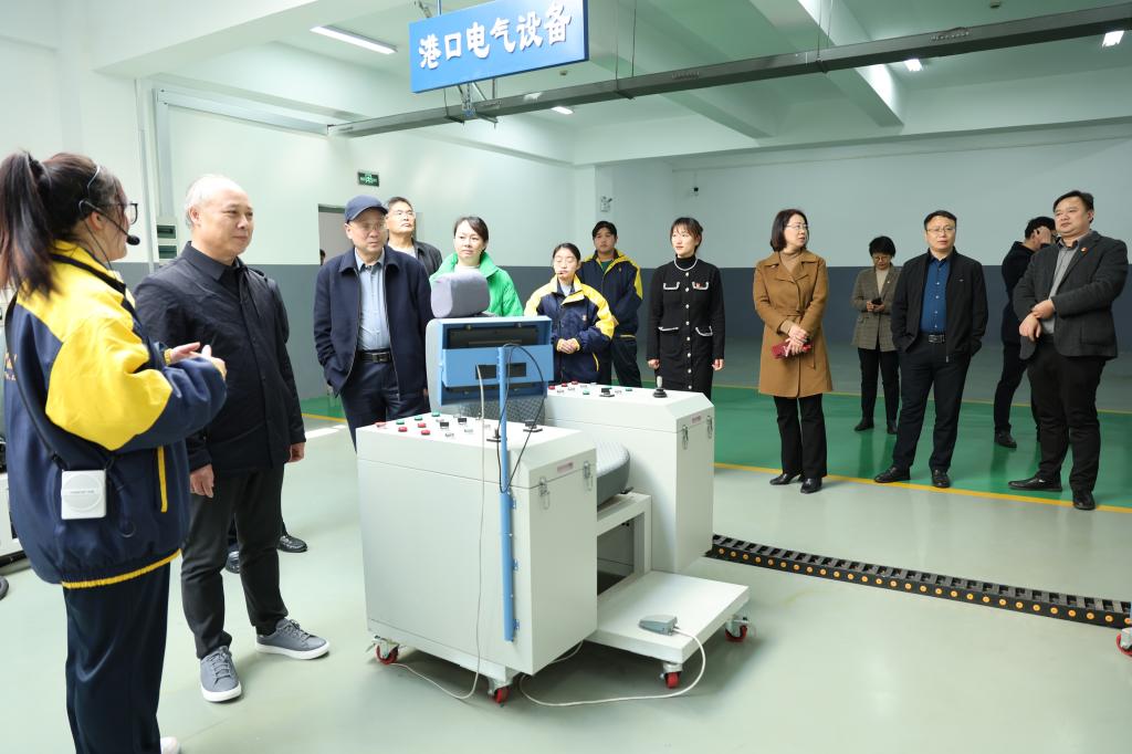 校内实地考察在3月20日下午和3月21日上午进行。专家组先后考察了港城校区和东仓路校区。在港城校区,专家组考察了E融商现代物资实训基地和港务与信息实训基地;在东仓路校区,专家组考察了现代木工设计中心、随美艺术设计现代学徒制培训中心(省中小学职业体验中心)、健身指导实训基地、太仓市产业工人赋能站(省现代化实训基地)和机电设备安装与维修实训基地(省现代化实训基地),并参观了学生社团作品展示。