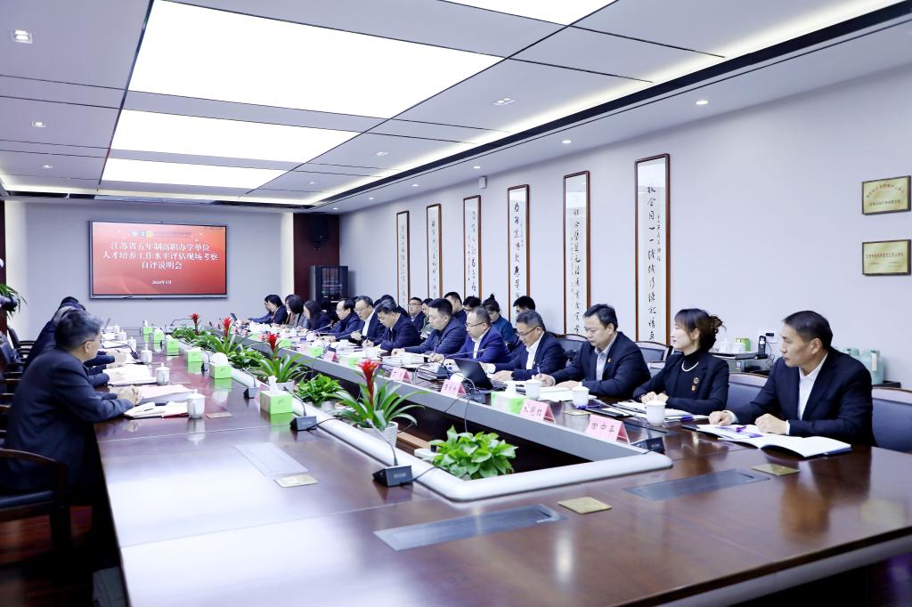 丁亮以《树联院思维,强高职意识,办高水平五年制高职教育》为题,作了学校评估自评汇报。