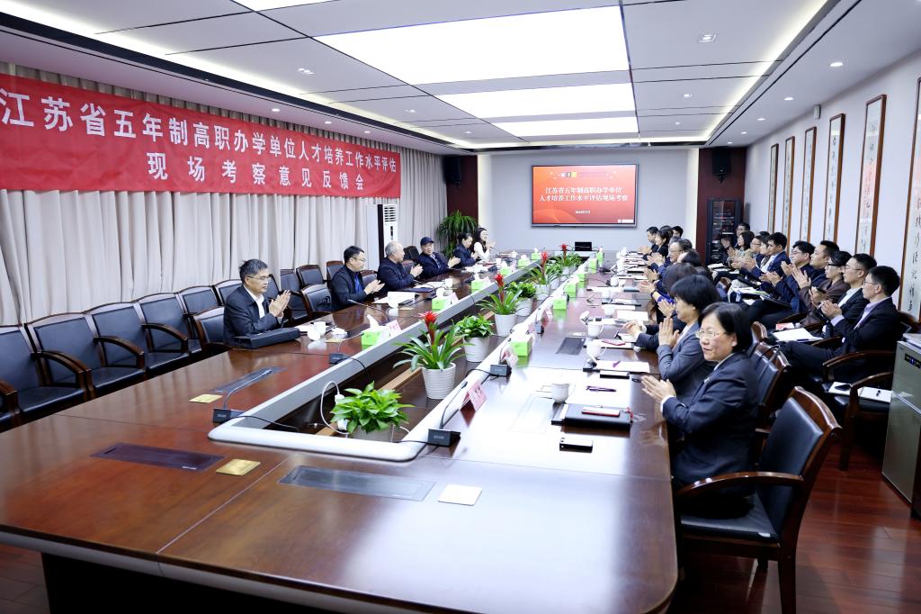 专家组组长吴访升教授代表专家组宣读现场考察意见反馈,专家组成员按照分工依次反馈了现场考察意见。专家组对太仓中专办学点的办学特色和取得的成果给予了肯定,指出了存在的问题,并对学校五年制高职人才培养工作高质量发展提出了建设性的意见和建议。