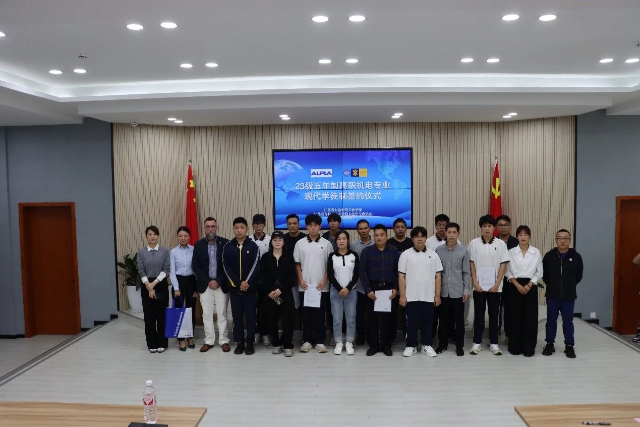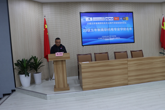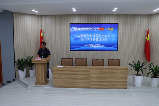 2024年10月9日,我校在东仓路校区尚远楼三楼报告厅顺利举办2023级五年制高职机电专业现代学徒制三方协议签约仪式。