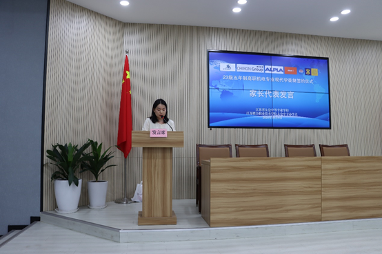 仪式上,学徒家长代表机电2351班吴鑫奇家长发言,她对学校为学生提供4家优秀的企业和良好的成长平台表示感谢。她表示,通过校企的宣讲和参观,了解到学徒制的培养过程,作为家长将配合好学校,督促孩子学习,并积极与企业沟通。